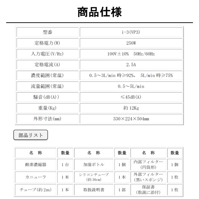 製品名: 酸素濃縮器 i-3(VP3)「アウトレット品(新品・未使用展示品)」